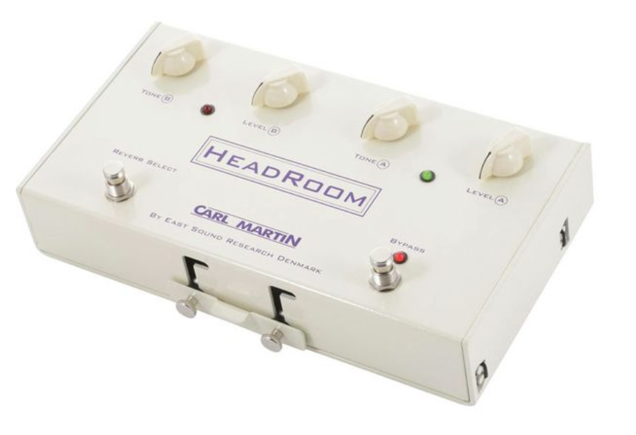 Trotz des 1 von Mad Professor habe ich auch immer mein Carl-Martin-Headroom-Reverb dabei, denn damit bekomme ich quasi den Sound eines alten Fender-Reverb-Pedals. Am liebsten würde ich natürlich das originale 63er Fender-Reverb spielen, das bei mir zuhause lagert. Das Problem dieser wunderbaren Geräte: Sie gehen schnell kaputt, weshalb ich sie selten mit auf Tour nehme. Equipment darf nicht anfällig sein, man muss sich darauf verlassen können. Auf das Headroom kann man sich zu 100% verlassen!
