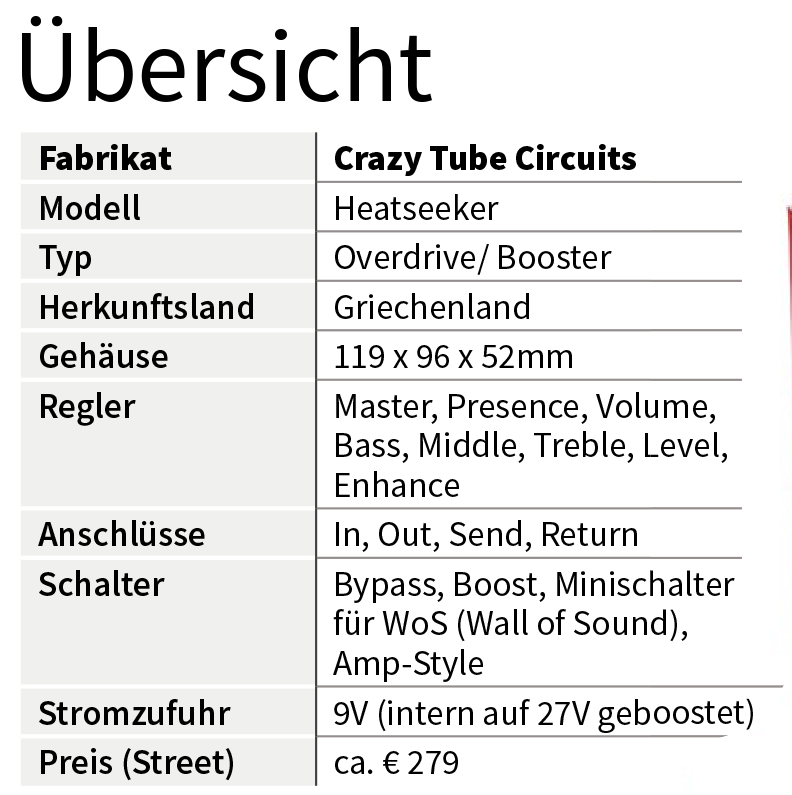 Am Ende bleibt der Eindruck eines Pedals, das nicht nur durch sein cleveres Konzept, sondern vor allem durch seinen enorm authentischen Sound überzeugt. Die Möglichkeit, zwischen drei Verstärker-Charakteren zu wechseln und das Ganze mit einem musikalisch arbeitenden Boost abzurunden, macht den Heatseeker zu einem echten Allrounder – nicht nur für AC/DC-Fans, sondern auch für Sound-Tüftler.