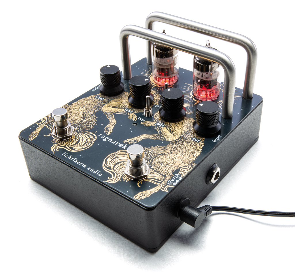 Pedale mit echter Röhrentechnik sind bis heute eher eine Seltenheit. Das gilt erst recht, wenn Hochvolttechnik zum Einsatz kommt und die Röhre damit tatsächlich eine Kernfunktion im Signalweg übernimmt. Die Berliner Pedal-Spezialisten von Lichtlærm Audio haben sich mit dem Ragnarøk dieser Aufgabe gewidmet.