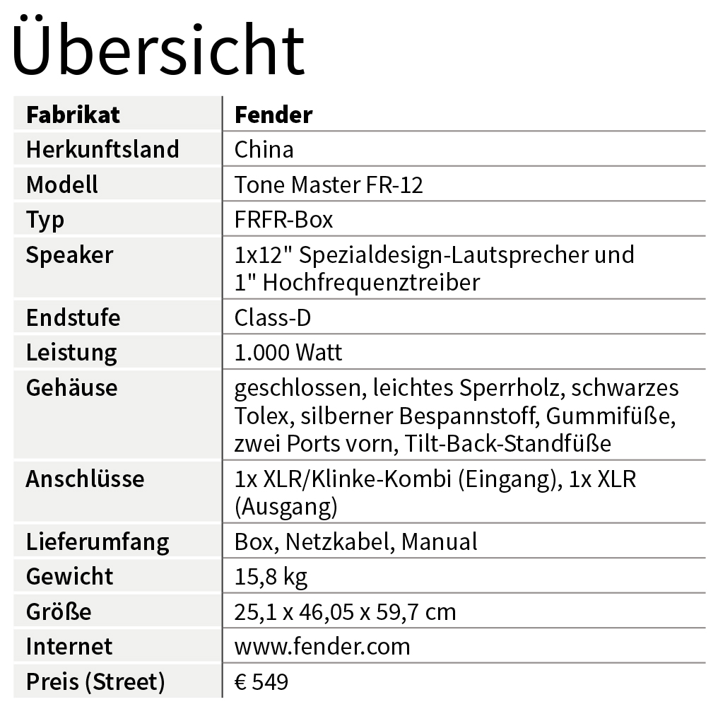 Da ist eine FRFR-Box und die Fender Tone Master FR-12 auf jeden Fall eine ausgezeichnete Lösung, um „seinen” Sound auch auf der Bühne durchsetzungsstark und gut zu hören.