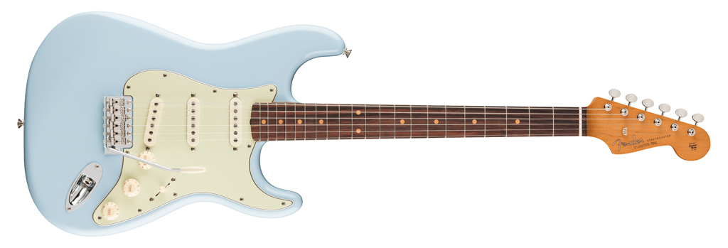 Diese Version kombiniert Erlekorpus, Ahornhals und Rosewood-Fingerboard mit Early-’60s-C-Profil und drei frühen 60s-Single-Coils. Wer den Wechsel von der 50s-Strat zur etwas runderen, glockigeren 60s-Anmutung sucht, findet hier die naheliegende Variante.