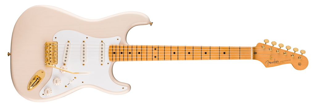 Die Limited Edition legt die 50s-Idee etwas edler aus: Eschekorpus in See-Thru Blonde, einteiliger Ahornhals, 1958-spec’d Pickups und goldene Hardware. Das Modell bleibt stilistisch nah an der späten 50er-Strat, setzt optisch aber einen eigenen Akzent.