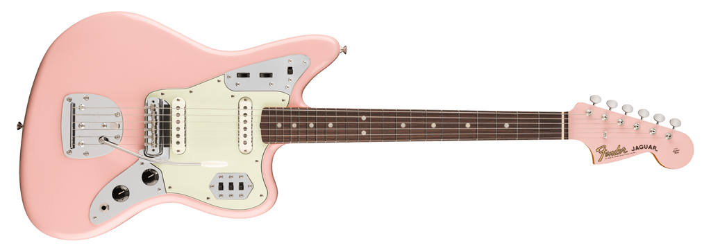 Auch die Jaguar orientiert sich klar an der Mitte der 60er: kurzer Offset-Body, zwei Single Coils, Floating Tremolo mit Tremolo Lock, Rhythm Circuit und sogar ein Jaguar-Mute im Vintage-Stil. Damit bleibt das Modell technisch nah an dem, was Jaguar-Fans an der Schaltung und Ansprache schätzen.