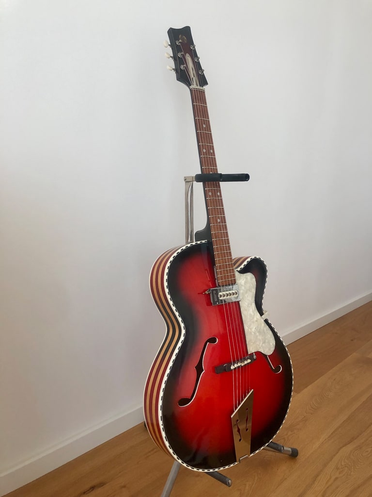 Leider bezeichnen Verkäufer alle alten Gitarren, die nicht eindeutig einer Marke zuzuordnen sind, gerne als „japanische Vintage-Schätzchen”, weil sich in den vergangenen Jahrzehnten ein nur teilweise gerechtfertigter Hype um sie gebildet hat und sich so der Preis in die Höhe treiben lässt. Das wäre bei diesem Beispiel aber gar nicht nötig, denn es handelt sich um eine durchaus wertige italienische Gitarre!