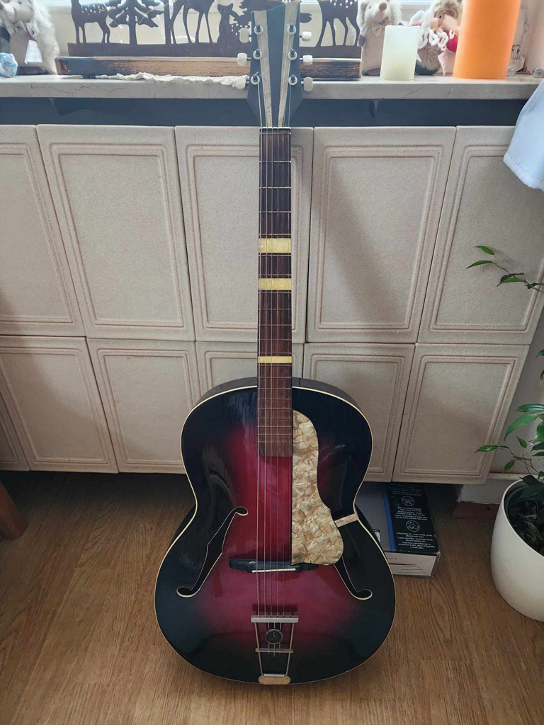 Ich habe eine Gitarre geschenkt bekommen und würde gerne wissen, um welches Modell es sich genau handelt. Es ist wohl eine Hopf Vintage Archtop Jazz Gitarre, aber ich kann sie leider nicht einordnen und finde keine ähnliche hier im Netz. Vielleicht könnt ihr mir ja auf Anhieb sagen, was für eine es ist.