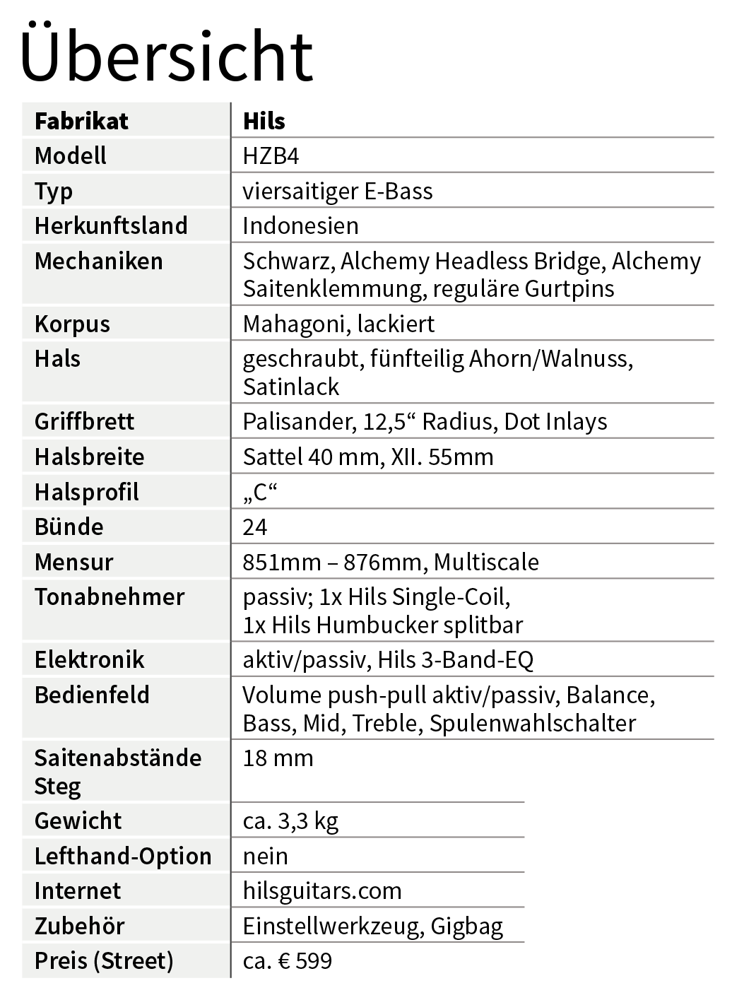 Der HZB4 bietet für seinen Preis ein bemerkenswert rundes Gesamtpaket aus guter Verarbeitung, angenehmer Ergonomie und vielseitigen Klangoptionen bei einem dennoch ausdrucksstarken Grundsound. Er wirkt in vielerlei Hinsicht wie ein im besten Sinne moderner Bass.