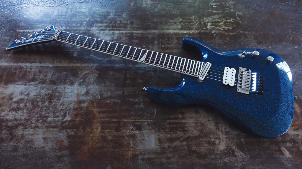 In einer Glas-Vitrine sah ich vor ein paar Jahren auf der NAMM eine Jackson Soloist aus dem US Custom Shop, bei der mir einfach die Spucke wegblieb. Die Kombination aus dem Blue-Sparkle-Finish, dem weißen Humbucker und Singlecoil und der Chrome-Hardware traf einfach genau meinen 80s-Nerv. Neben all diesen schwarzen Gitarren, die ich besitze, habe ich doch wirklich eine Schwäche für den Look dieser Ära …