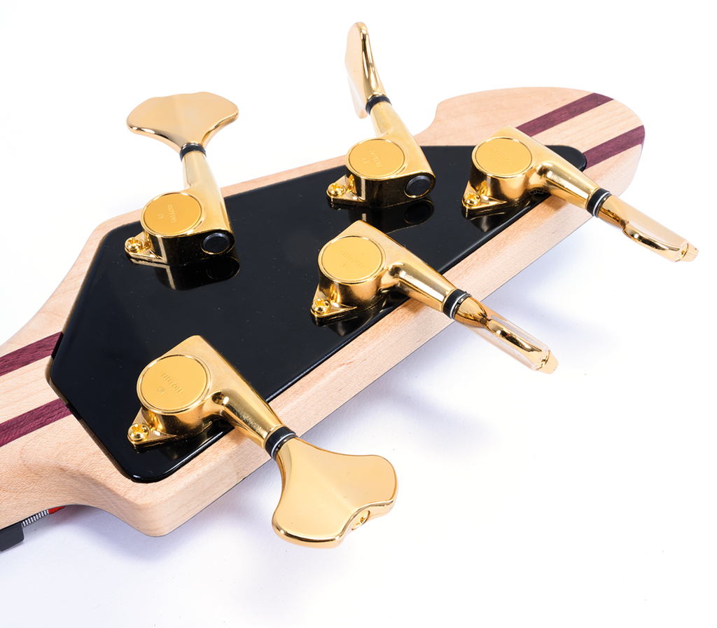 Schon der Vorgänger des Cirrus hatte zur Stabilisierung der ebenfalls sehr klar geschnittenen Kopfplatte eine Auflage aus Graphit. Die Power Plate auf der Rückseite ist erst bei den neueren Ausführungen dazugekommen und auch beim Testbass verbaut. Diese Graphit-Einlage ist ein Enkel des Fatheads, einer Erfindung von Aspen Pittman/Groove Tubes. Mit einer großen Messingplatte wollte er hinten auf dem Headstock Deadspots den Garaus machen. Dessen Nachfolger ist der Fat Finger, der immer noch von Fender vertrieben wird. Aber ich schweife ab … Auch die Power Plate soll stabilisieren und für mehr Sustain und Gleichmäßigkeit im Ton sorgen.