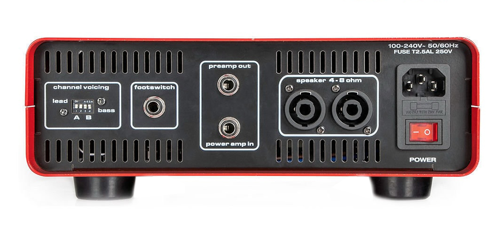 Zwei unabhängige Kanäle (A und B), schaltbar – und, je nach Setup, für Gitarre oder Bass konfigurierbar.