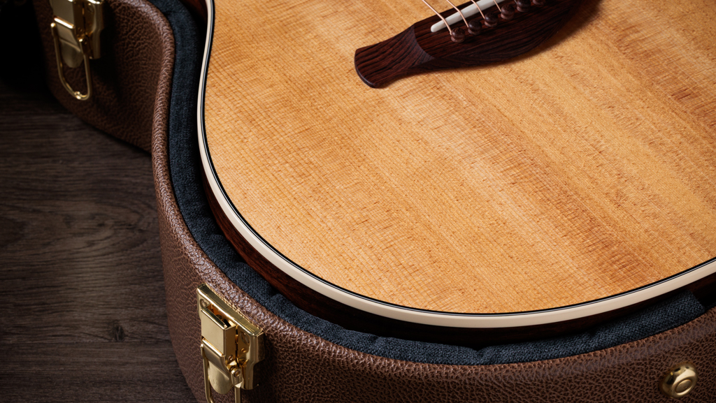 Mit den neuen Gold-Label-Grand-Concerts denkt Taylor die eigene kompakte Korpusform ein Stück weiter. Der Body bleibt auf Komfort und Direktheit ausgelegt, fällt aber tiefer aus als bei der klassischen Grand Concert. Dadurch soll mehr Luftvolumen entstehen, was laut Taylor zu mehr Wärme, stärkerem Bassfundament und größerer Dynamik führt.