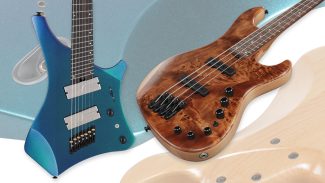 Die Korpusform entspricht dem Original, mit seinen wuchtigen Hörnern und dem typischen Zipfel am Korpusende. Das Holz der Wahl ist Esche, sauber in mattes Schwarz gehüllt. Auffällig ist die Verwendung eines einzelnen Pickups in JB-Form, hergestellt von Kent Armstrong in schönstem Grün. Zumindest ist das der einzige direkt sichtbare Abnehmer, im Steg befinden sich noch Piezoelemente.