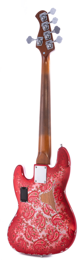 Und dann ist da noch die Lackierung … Ich kann mich dem leicht kitschigen Charme nicht entziehen. Subtil ist sie zwar nicht und es gibt auch keine feine Handarbeit in der „Abnutzung” zu sehen, aber Kleinigkeiten wie die etwas dreckige Oberkante des Bindings sind zu verschmerzen. Das hohe Gewicht, vor allem des Fünfsaiters, wird dem einen oder der anderen zu viel sein – aber vielleicht ist das und die etwas schlappe H-Saite ja auf mein Testinstrument beschränkt. Auch deshalb, wie immer, zum persönlichen Antesten empfohlen!