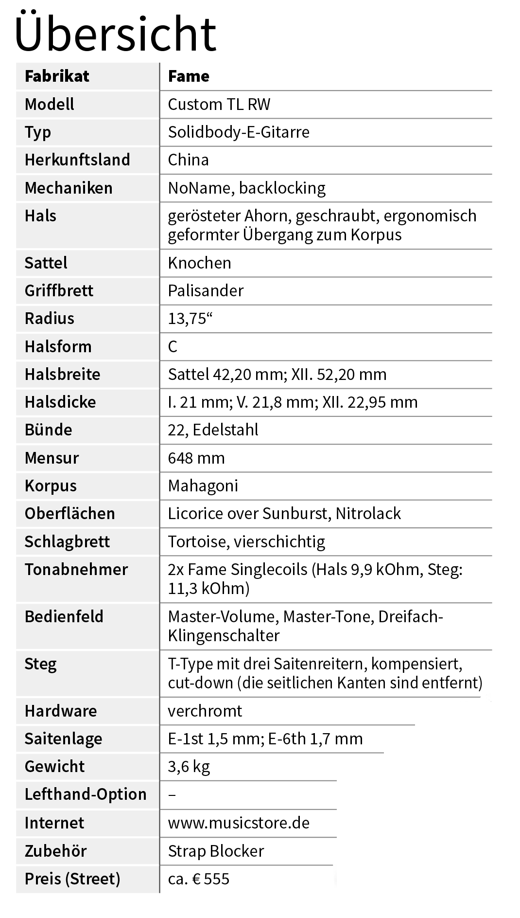 Diese Features-Offensive ist in der Preisklasse, in der die Fame Custom TL unterwegs ist, eine Besonderheit und zusammen mit der gelungenen Verarbeitung, die auch vor unsichtbaren Details nicht halt macht, ein starkes Pfand in der Gunst des Interessenten.