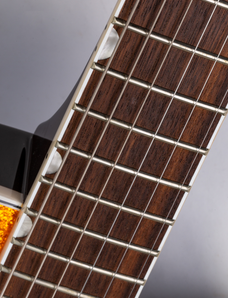 Griffbrett aus Lorbeerholz mit „Neo Classic Thumbnail“-Inlays (Bild: Dieter Stork)