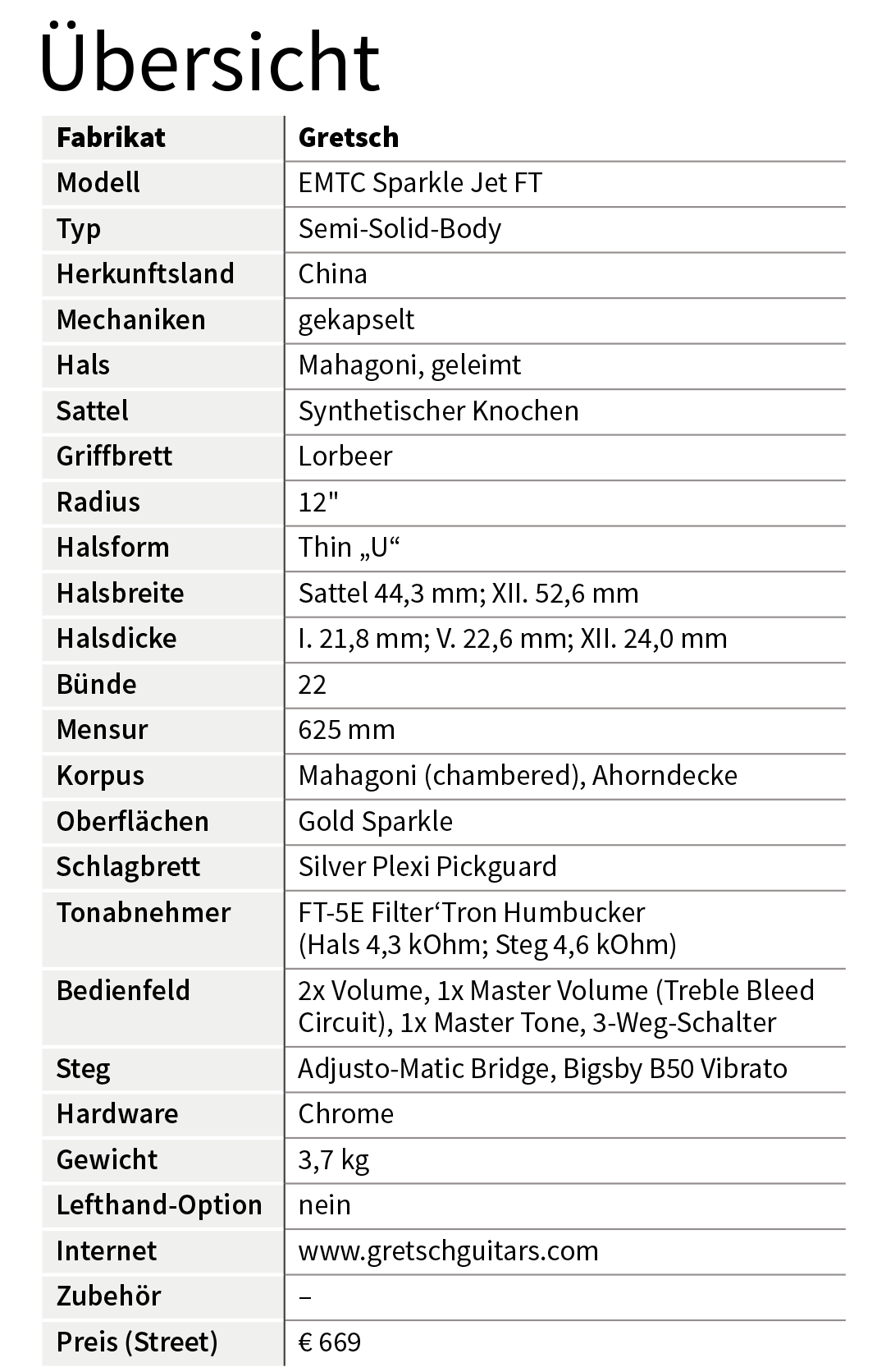 Die aktuell angebotene Palette an JET-Variationen ist erstaunlich vielfältig. Die vorliegende Sparkle Jet aus der Electromatic-Reihe gibt es in den Farben Gold und Silber.