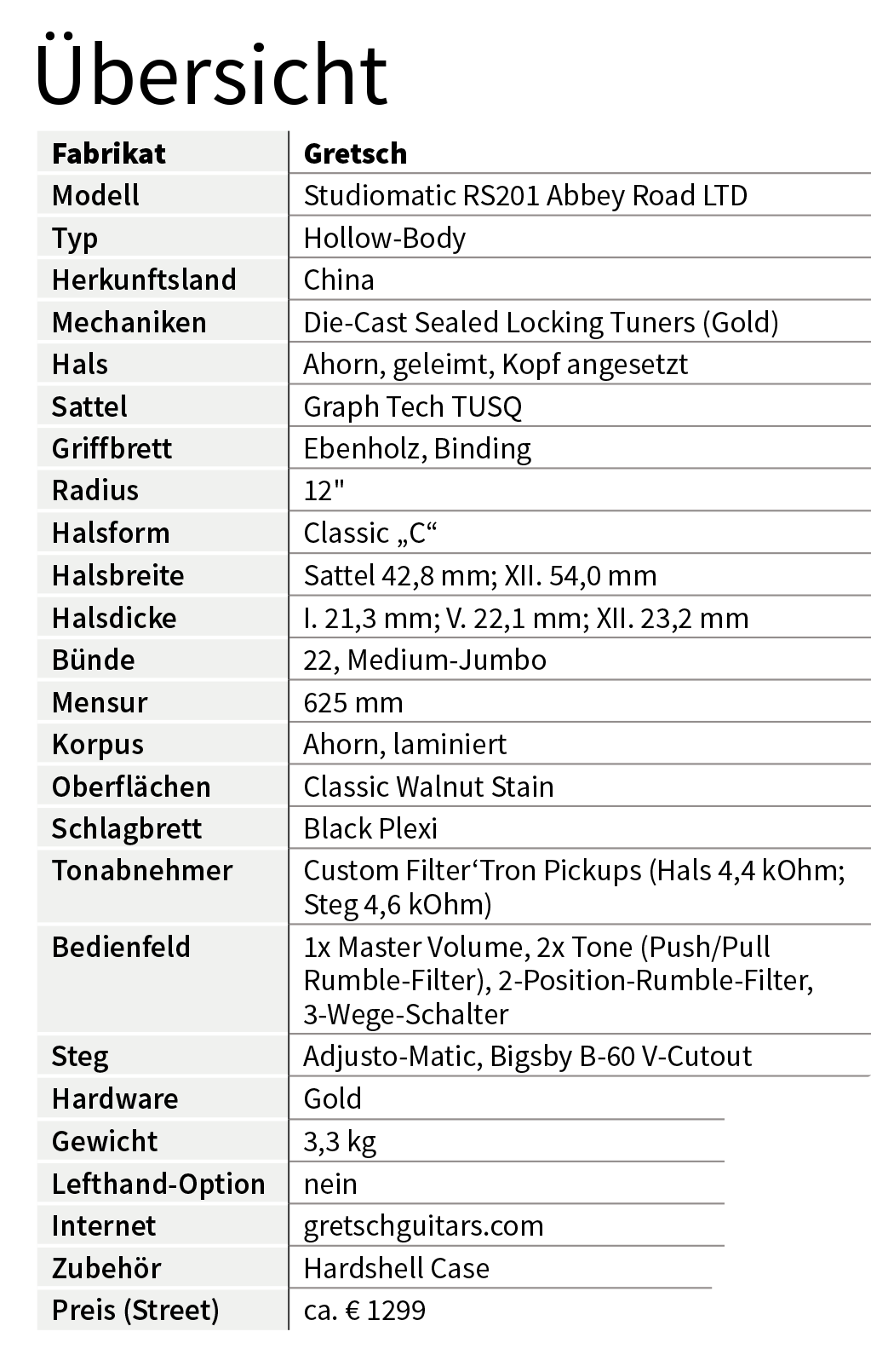 Im Bühnenbetrieb, und das wird für die meisten von uns ja doch der gängige Einsatzbereich sein, lässt sich mit dem Rumble-Filter dann nicht nur klanglich effektiv differenzieren, sondern auch die einer Hollow-Body immer drohende Feedback-Gefahr eingrenzen, was von zusätzlichem Wert ist. Daumen hoch also für diese kooperativ gestaltete und sauber gefertigte Abbey-Road-Gretsch, die sich sehr gut spielt, mit klassischem Vintage-Appeal höchst erfreulich klingt und dann auch noch den Bonus der erhöhten klanglichen Flexibilität bietet.