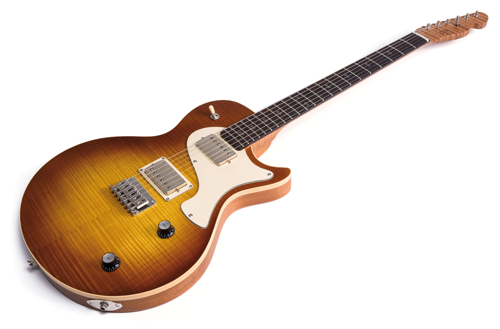 Schraubhals mit T-style-Kopfplatte trifft auf LP-style-Body mit Humbucker-Elektrik. Hm, hier Fender, dort Gibson – das waren doch mal quasi isolierte Welten mit oftmals orthodox gläubigen Anhängern. Pah, freedom rules, ist heute doch alles kein Problem mehr!