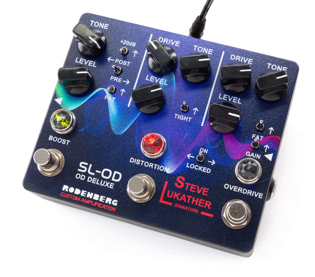 Die Zusammenarbeit von Ulrich Rodenberg mit Steve Lukather bringt uns drei Signature-Pedale in einer Art Baukasten. Im Kern sind das ein Clean-Boost, ein Overdrive und ein Distortion, die je nach Modell in Kombination oder einzeln erhältlich sind. Das Flaggschiff-Modell SL-OD DLX DRIVE Custom Shop, das Steve Lukather schon seit einiger Zeit selbst nutzt, beinhaltet die größtmögliche Flexibilität an Boost-, Drive- und Distortion-Sounds (und deren Kombination). Wer weniger benötigt, wird mit den kleineren Modellen entsprechend fündig.