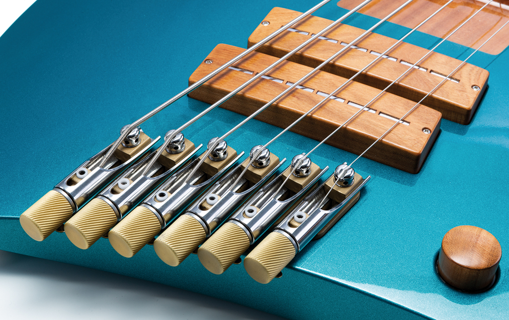 Der Grundgedanke hinter der neuen Hardware ist, sie so bedienfreundlich wie möglich zu gestalten. Zu diesem Zweck ist sie so konzipiert, dass nur ein Sechskantschlüssel in einer einzigen Größe erforderlich ist, um alle relevanten Änderungen vornehmen zu können. Zum Verstellen der Saitenhöhe wird einfach das Spokewheel mit dem eingesteckten Schlüssel gedreht. Das Vorgehen dürfte vielen von den korpusseitig zu bedienenden Halsstäben einiger Instrumente bekannt sein. Mit der gleichen Schlüsselgröße werden auch die Madenschrauben zum Klemmen des offenen Saitenendes sowie die unter den Rändelschrauben „versteckten“ Schrauben zur Einstellung der Intonation bedient.