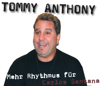 DER MANN AUS MIAMI IST EIN WAHRER ALLESKÖNNER: EIN AUSGEZEICHNETER LIVE- UND STUDIO-GITARRIST, DER FÜR GLORIA ESTEFAN UND SHAKIRA, RICKY MARTIN UND STEVE WINWOOD GEARBEITET HAT. ER IST KOMPONIST, PRODUZENT UND STUDIOBESITZER. ALS ER JEDOCH DAS ANGEBOT ERHÄLT, AN DER SEITE SEINES IDOLS CARLOS SANTANA SPIELEN ZU DÜRFEN, IST DIE GITARRE SOFORT IM KOFFER UND TOMMY ANTHONY AUF DEM WEG.