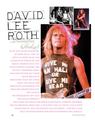 ES IST EINE KLEINE SENSATION: 28 JAHRE NACH "1984" IST DAVID LEE ROTH NICHT NUR NEUER ALTER SÄNGER BEI VAN HALEN, SONDERN AUCH TEIL EINES COMEBACK-ALBUMS, DAS DIE FAST VERGESSENE HARDROCK-INSTITUTION AUF EINEM NEUEN KREATIVEN HÖHEPUNKT ZEIGT. MIT EINEM EDDIE VAN HALEN, DER SÄMTLICHE GESUNDHEITLICHEN PROBLEME ÜBERWUNDEN HAT, DER TIGHTEN RHYTHMUSGRUPPE MIT ALEX UND DEM 20-JÄHRIGEN WOLFGANG VAN HALEN UND EINEM GELÄUTERTEN ZAMPANO AM MIKRO, DER DIE DREIZEHN SONGS VON "A DIFFERENT KIND OF TRUTH" ZUM ECHTEN GENUSS MACHT. NUR: WIE KONNTE DAS GESCHEHEN – UND WIE LANGE HÄLT DER BURGFRIEDEN? WIR FRAGTEN DIAMOND DAVE HIMSELF.