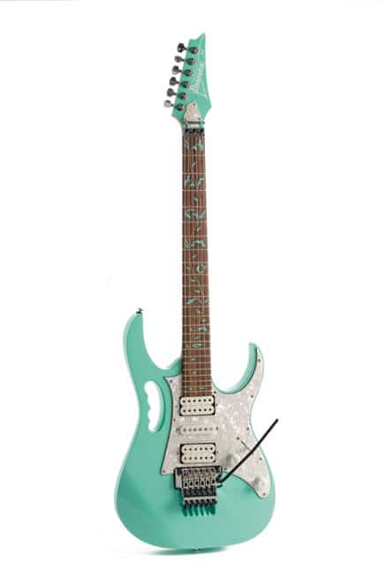 Hmm, eine Ibanez JEM in Sea Foam Green! Das riecht förmlich nach Sommer, Sonne, Strand und Surfen und soll zumindest un ...