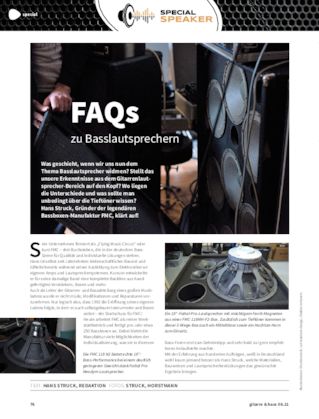 Was geschieht, wenn wir uns nun dem Thema Basslautsprecher widmen? Stellt das unsere Erkenntnisse aus dem Gitarrenlautsprecher-Bereich auf den Kopf? Wo liegen die Unterschiede und was sollte man unbedingt über die Tieftöner wissen? Hans Struck, Gründer der legendären Bassboxen-Manufaktur FMC, klärt auf!