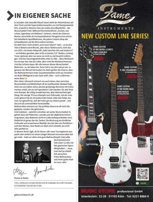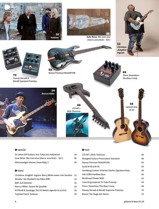 Hils HZB4 Headless Bass +++ Rockboard Power MOD +++ ESP/LTD MT-1 Mick Thomson +++ Shergold Guitars Provocateur Standard +++ Ibanez Premium RGA20P1PB +++ Guild M-40 & M-50 +++ Sandberg Custom Yolanda Charles Signature Bass +++ Thorn Steambass Flex Bass Comp +++ Peavey Decade & Bandit Supreme Preamps +++ Tone King Imperial Tri-Tube Preamp- Download