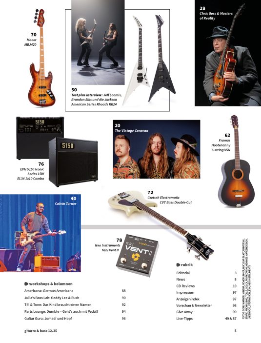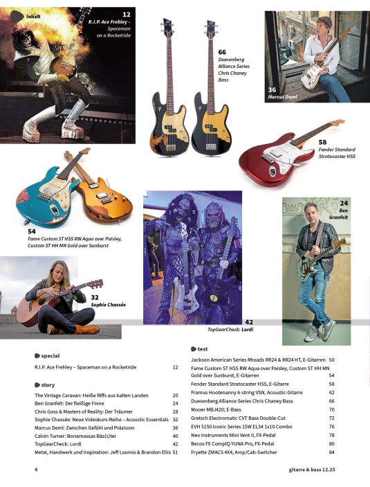 IM TEST: Fame Custom ST HSS & Custom ST HH +++ Fender Standard Stratocaster HSS +++ Framus Hootenanny 6-string VSN +++ Duesenberg Alliance Series Chris Chaney Bass +++ Mooer MBJ420 +++ Gretsch Electromatic CVT Bass Double-Cut +++ EVH 5150 Iconic Series 15W +++ Neo Instruments Mini Vent II +++ Becos FX CompIQ YUNA Pro +++ Fryette ZMACS 4X4- Download