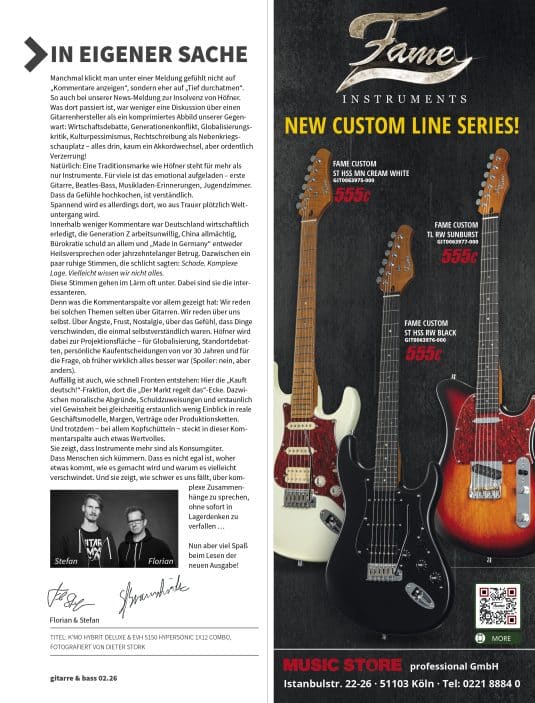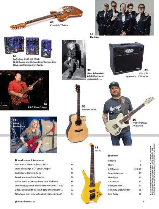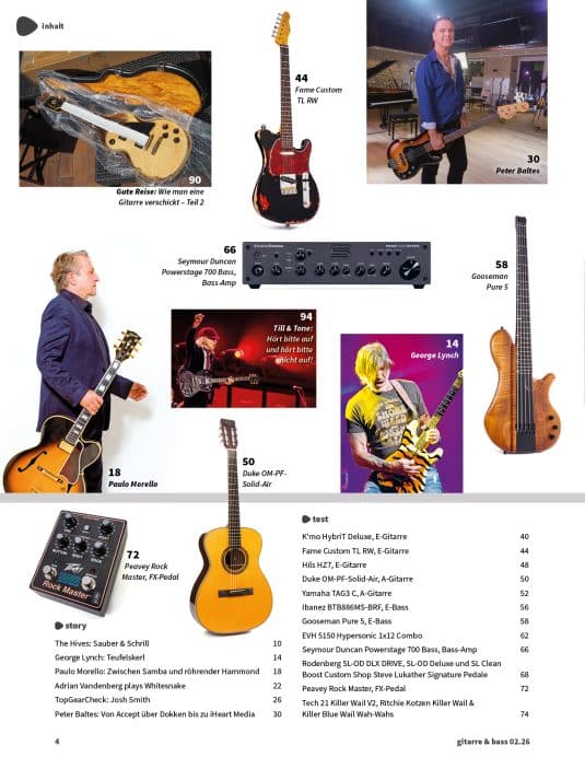 IM TEST: K'mo HybriT Deluxe +++ Fame Custom TL RW +++ Hils HZ7 +++ Duke OM-PF-Solid-Air +++ Seymour Duncan Powerstage 700 Bass +++ Yamaha TAG3 C ++++ Tech 21 Killer Wail Wah-Wahs +++ Ibanez BTB886MS-BRF ++++ Gooseman Pure 5 +++ EVH 5150 Hypersonic 1x12 Combo +++ Rodenberg Steve Lukather Signature Pedale +++ Peavey Rock Master- Download