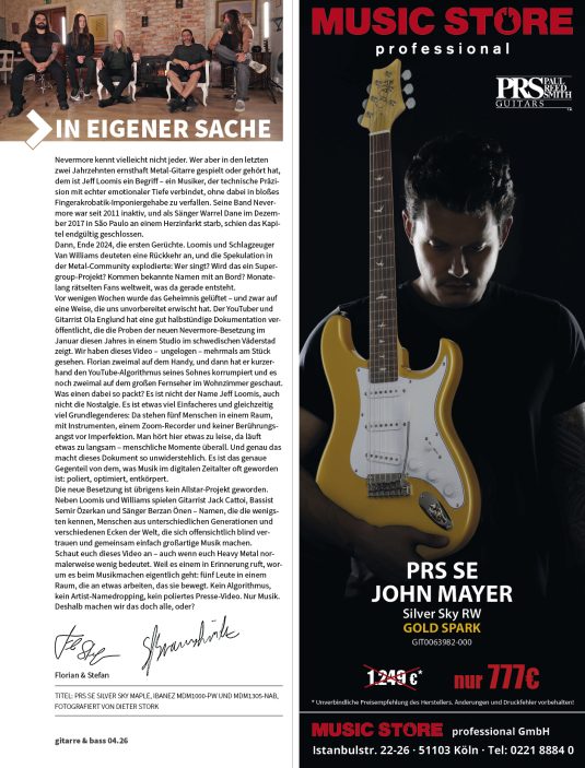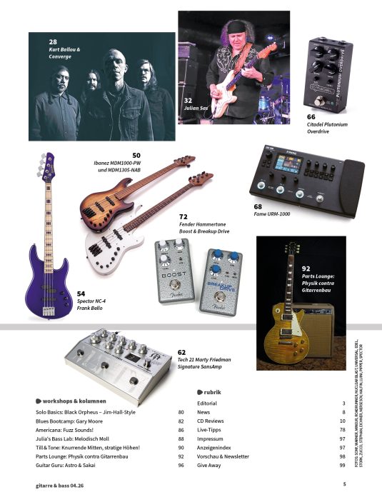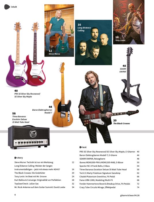 IM TEST: Citadel Plutonium Overdrive +++ PRS SE Silver Sky Rosewood & Maple +++ Baron Elektrogitarren Modell T +++ Fame URM-1000 +++ Fender Hammertone Boost & Breakup Drive +++ Spector NC-4 Frank Bello +++ Ibanez MDM1000-PW & MDM1305-NAB +++ Tech 21 Marty Friedman Signature SansAmp +++ Three Bananas Excelsior Deluxe 35 Watt Tube Head
