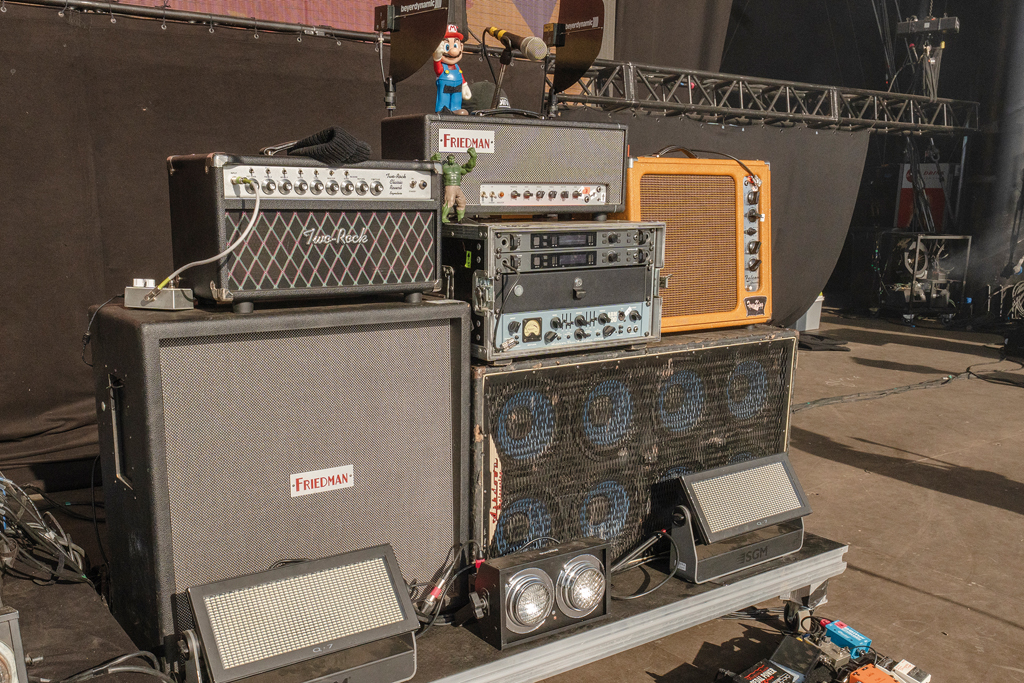 Drei Gitarren-Amps auf der Bühne: Two-Rock Classic Reverb Signature, Friedman Dirty Shirley und Tone King Falcon Grande Combo (Bild: Danny Kötter)