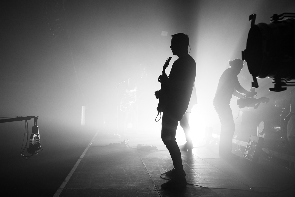 Eigentlich nicht wirklich. Es war ein bisschen wie die Probe zur neuen Show, die wir auch live spielen wollen. Die hat unser Lichtmann Sean entwickelt. Das Ganze ist bei uns teilweise programmiert, wir spielen also nach Sequenzer und Click und es gibt dann Midi-Spuren, die über einen Converter in ein DMX-Signal das Licht ansteuern. Zum Teil bedient Sean aber auch das Licht vom Haus mit dazu. Für die Club100-Show konnten wir das genauso aufbauen und bestellen, wie wir das in Zukunft machen wollen. Es war also auch gut, das mal unter Optimalbedingungen in so einem Venue zu testen – und es hat auch genauso geklappt, wie wir uns das vorgestellt haben. Das ist also getestet und so wollen wir die Show später auch mit auf Tour nehmen. Bei Peter (Keyboarder der Band, Anm. d. Red.) war es natürlich ein viel kleinerer Rahmen, da haben wir auch ein etwas anderes Setup ausprobiert: Eben etwas intimer, mit Lichtkegeln über unseren Köpfen und gleichzeitig aber auch mit Blindern und Atomics. Auch eine sehr coole und andere Produktion.