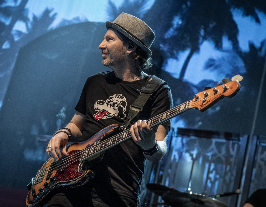 Ich besitze diverse Bässe, darunter zwei Sadowskys, nämlich einen MetroLine JJ 5-String mit Esche-Body, Ahornhals und DiMarzio Single Coils, und einen MetroLine JJ 5-String mit Erle-Body und Morado-Griffbrett. Hinzu kommen sechs Fender-Bässe: ein 1973er Jazz Bass mit EMG-Pickups und Badass-II-Brücke, ein 1969er Jazz Bass mit 73er Pickups, ein 1966er Jazz Bass mit Kloppmann-Pickups, ein 1963er Precision, ein 1967er Coronado und ein 1971er Mustang.