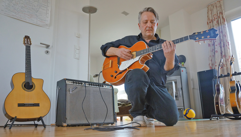 Zu Projekten und Live-Terminen kommt seine Lehrtätigkeit am Berliner Jazzinstitut, hier ist Paulo Morello Professor für Jazzgitarre und einer der künstlerischen Direktoren. Ein Hausbesuch mit Guitar Porn, denn die Gitarrensammlung ist beachtlich.