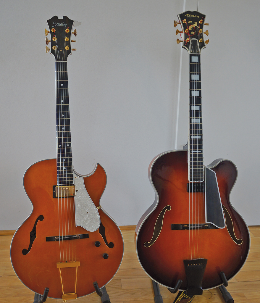 Die L-5 CES von 1976 ist meine Hauptgitarre. Die habe ich gut im Griff und sie taugt für alle Lautstärken von leisem Jazz bis Rock. Gerne spiele ich die Gitarren von dem deutschen Gitarrenbauer Stefan Sonntag. Meist sprechen wir über amerikanische Gitarrenbauer, dabei gibt es auch sehr gute deutsche Gitarrenbauer. Ich besitze auch eine Trenier aus Südfrankreich, die durch den Gitarristen Pasquale Grasso bekannt wurde.