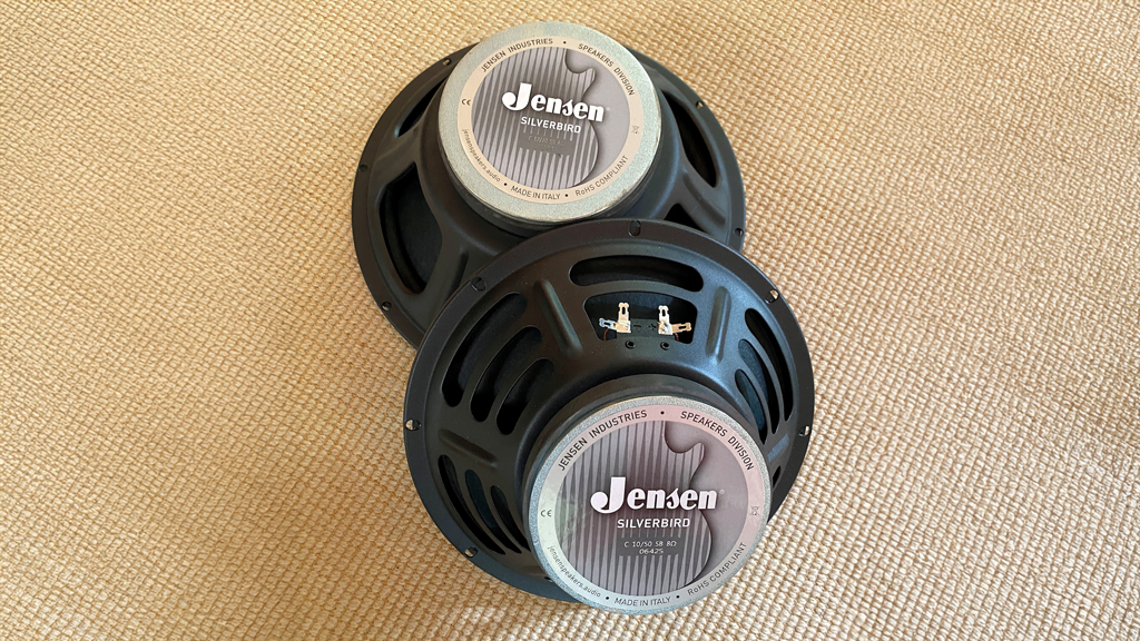 Beide Lautsprecher gefielen mir im Test auf Anhieb außerordentlich gut, denn sie lieferten die gewünschten milderen Höhen, prägnante Mitten, die fast ein bisschen an einen Electro-Voice-Speaker erinnern, und sehr, sehr klare Bässe. Letzteres ist für die „scooped“ Abstimmung der meisten Fender-Amps ein riesiger Vorteil. Vor Jahren habe ich bei Meetings mit Philip Sayce oder JD Simo gesehen, dass sie den Bass-Regler bei ihren Super Reverbs auf Nullstellung hatten. Also kein Bass! Dennoch war ihr Ton fett und mächtig. Mit dem Silverbird konnte ich die Fender-Amps locker mit halb aufgedrehtem Bass-Regler spielen. Bei höheren Lautstärken – weil die Bässe so zunehmen – dann vielleicht auf Stellung „4“ oder „3“. Die Bässe tönen dann ein bisschen Piano-like wie bei den Beatles, obwohl die in ihren Alu-Frame Twin Reverbs sicher andere Speaker verwendeten. Es ist aber auch so, dass man diese warme und hölzerne Abstimmung auch als „american sound“ bezeichnet und wir alle ein bisschen davon geprägt sind. SRV- oder John-Mayer-Licks gelingen so wesentlich besser als über einen Celestion Greenback. Laut Hersteller war tatsächlich der Blackbird Alnico 40 auch Vorbild für die Abstimmung. Man wollte aber mit insgesamt 70 Watt Leistung den Lautsprecher auch für härtere Gangarten, sprich High-Gain ausstatten. Und das ist meiner Meinung nach perfekt gelungen. Man kann damit auch richtig Gas geben, ohne das die Höhen zu kalt oder harsch werden, während die Bässe knackig bleiben. Hier macht der Speaker dem dafür beliebten Vintage 30 von Celestion Konkurrenz.