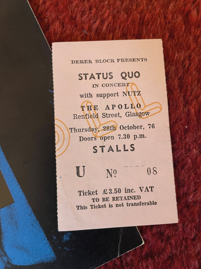 Original Quo-Eintrittskarte vom Apollo Theatre 1976 (Bild: Ralf Oehmichen)